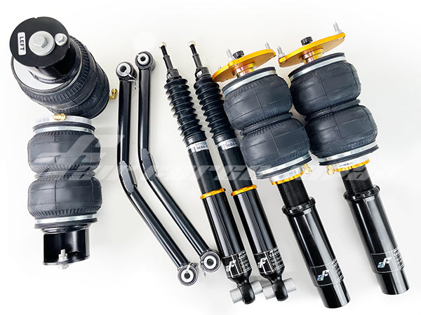 All Airforce suspensions have a thread adjustment, depending on the vehicle and version combined with adjustable support bearings, allow for adjustment through both the lower mount and inflatable sleeve or double bellow style air bellow which allows for ultimate range of ride height adjustment. Each air shock features a 36-way damping adjustable design for fine tuning of ride quality and responsiveness.