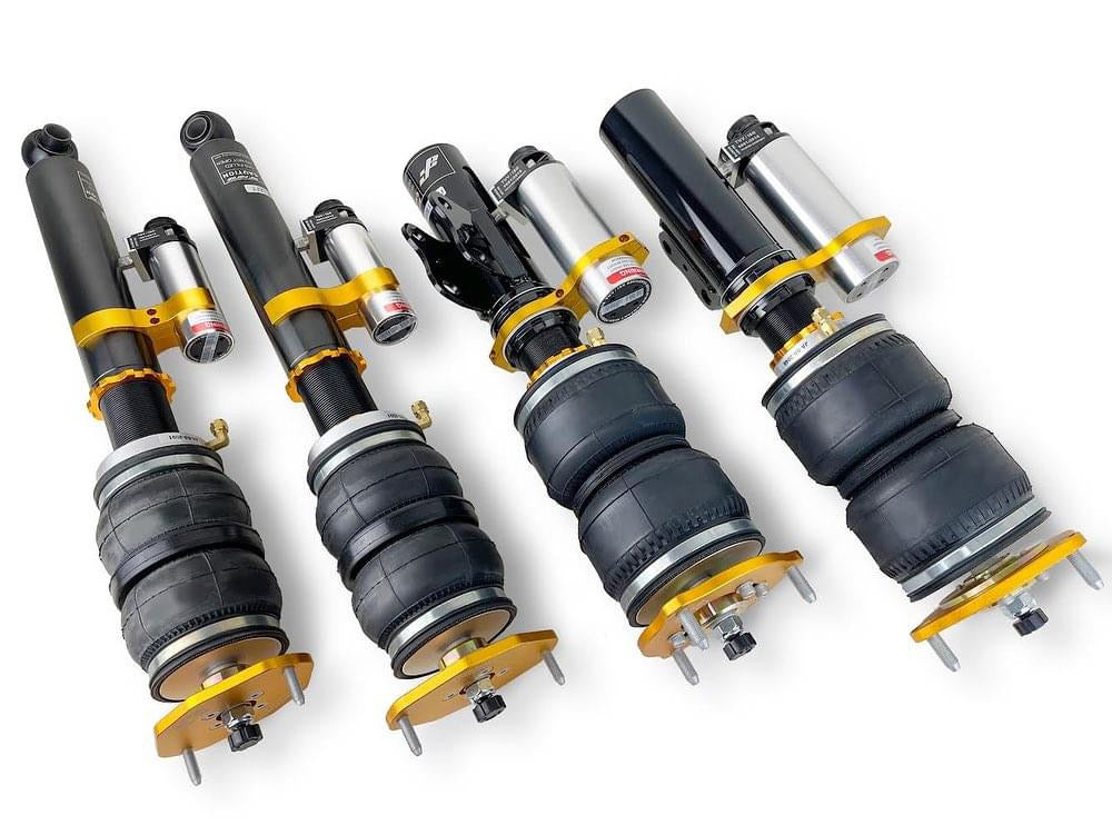 All Airforce suspensions have a thread adjustment, depending on the vehicle and version combined with adjustable support bearings, allow for adjustment through both the lower mount and inflatable sleeve or double bellow style air bellow which allows for ultimate range of ride height adjustment. Each air shock features a 36-way damping adjustable design for fine tuning of ride quality and responsiveness.