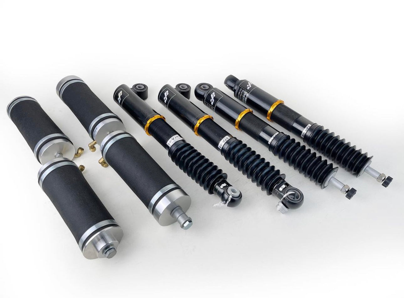 All Airforce suspensions have a thread adjustment, depending on the vehicle and version combined with adjustable support bearings, allow for adjustment through both the lower mount and inflatable sleeve or double bellow style air bellow which allows for ultimate range of ride height adjustment. Each air shock features a 36-way damping adjustable design for fine tuning of ride quality and responsiveness.